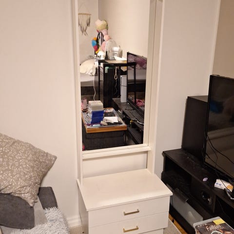 Joutilaana peilillinen lipasto, jotka ovat samaa sarjaa. Peili on erillinen, ei kiinni lipastossa ja täten vapaasti sijoitettavissa seinälle. Asiallisessa kunnossa, ja ovat siis 1980-luvun alkupäästä.