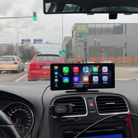 Myyntiin lähtisi tämmöinen näppärä pikkuinen kosketusnäyttö, jota pystyy ohjaamaan langattomasti Apple/Android puhelimilla. Näytön saa helposti kiinni joko levyasemaan tai tuulilasiin ja voi käyttää vaikka navigaattorina jos ei muuta käyttöä keksi. Kaikki hilppeet tallella.