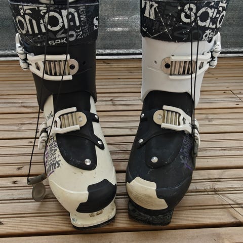 Salomon Performa 70 Laskettelumonot, koko 23,5 cm (37 1/3 EU). Väri punainen. Monot on varustettu neljällä soljella. Siisti kunto, jtn pieniä haaleita naarmuja. Voi testaa Käpylässä.