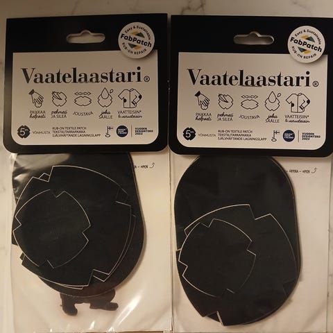 Itselläni jääneet ylimääräiseksi kotimaiset vaatelaastarit Suomessa suunniteltu ja valmistettu kierrätysmateriaalista.