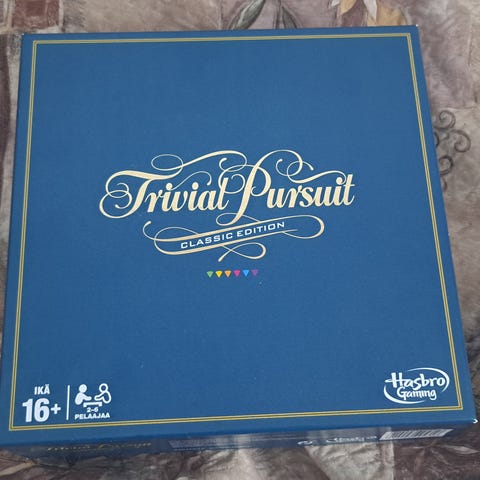 Hasbro Trivial Pursuit Classic Edition lautapeli sisältää pelilaudan, pelinappulat, kortit ja nopan. Peli on tarkoitettu 16-vuotiaille ja sitä vanhemmille. 2-6 pelaajalle.