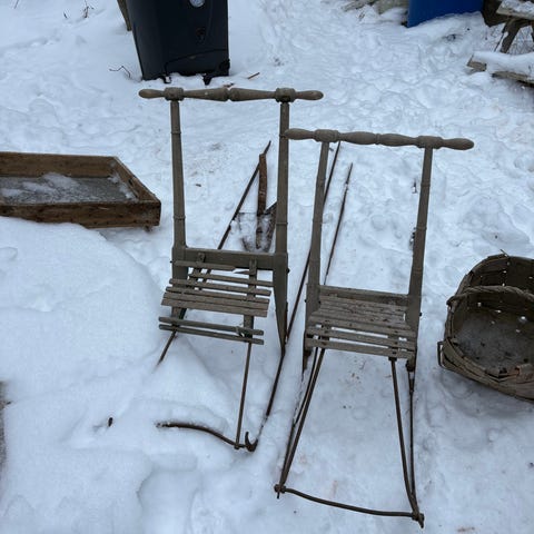 Kulunut, mutta ehjä potkukelkka, koko todennäköisesti 4 (pienehkö)