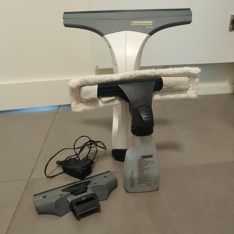 Kärcher WV 5 ikkunanpesuri, väriltään keltainen. Laite soveltuu ikkunoiden ja muiden tasopintojen puhdistukseen. Mukana laturi.