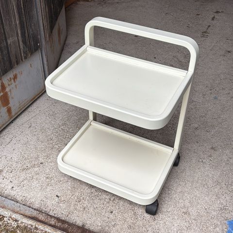 Runko on metallia ja pöytälevy on karkaistua lasi. Lisäksi vaunussa on pyörät, joten sitä on helppo liikuttaa.