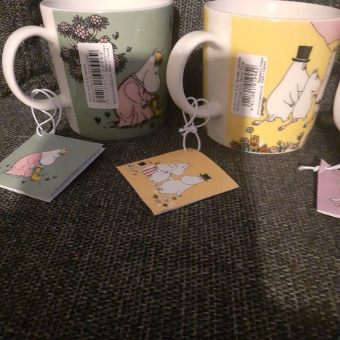 Rosa, sininen ja keltainen isompi (0,4l) muumimuki. Uusia ja tarrallisia. Hinta 17€/kpl tai kaikki kolme yhteishintaan 47€. Postitus tai nouto.