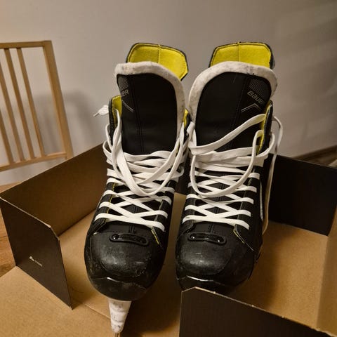 Tästä käytetyt mutta toimivat Bauer Supreme luistimet 2000-luvun alusta. Teriä ei tälle talvelle ole vielä teroitettu mutta teroitettuna oikeinkin hyvät luistimet.