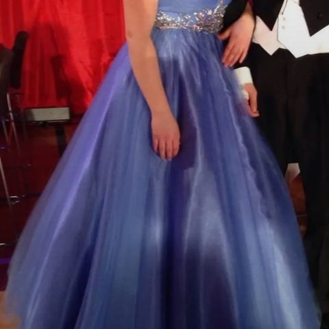 Kerran tanssittu vanhojen mekko merkiltä Flower By Charm's Paris. Mekko on kokoa L ja mekossa on sisään ommellut kupit. Olen itse 167cm pitkä ja käytän yleensä vaatteissa kokoa M ja tanssin tennareissa.
