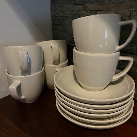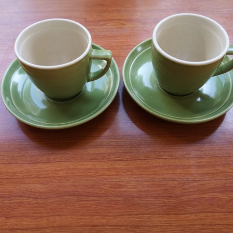 Kermansaven Oliivi-sarjan vihreät kahvikupit ja tassit 6 kpl. Hyvin vähän käytetty.