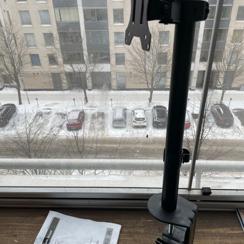 Tässä sama tuote: https://www.verkkokauppa.com/fi/product/536079/Mozi-Basic-Stand-with-Dual-Joint-poytajalka-yhdelle-naytolle