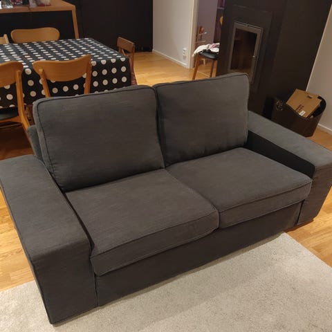 Myynnissä Ikean Kivik sarjan valkoinen divaani. Kyseistä väri erittäin harvoin tarjolla. Kivik sarja tunnetaan erittäin loistavasta istuinmukavuudestaan ja vahvasta rungostaan. Sohvan runko ja jouset ovat ehjät. Divaanin kaikki päälliset ovat irrotettavissa pesuun. rungon päällinen mukaan lukien. Lisäksi päälliset ovat halutessaan vaihdettavissa. Divaaniin on meidän toimesta vaihdettu hieman korkeammat metallijalat. Tällä divaanin on saatu huomattavasti miellyttävämpi istuin korkeus. Valkoinen päällin ja mustat jalat sopivat loistavasti myös yhteen. Lisäksi 10cm korkeiden jalkojen ansiosta puhtaanapito divaanin alta on helppoa. Huomioitavaa päällisten kunnossa: Valkoisesta väristä johtuen uutta etsivä voi minimaalisen pienen käytönjäljen löytää. Itse sanoisin divaania erittäin siistikuntoiseksi. Divaanin hinta: 289e.