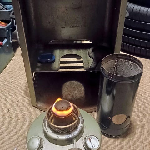Kamiina on ollut käytössä ja pidetty huolta. Seissyt viime vuodet varastossa, koska telttaratkaisu jäi pois käytöstä – ei teknistä vikaa, pelkästään elämän realiteetteja.