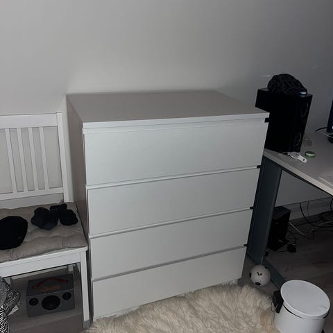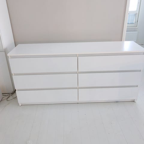 Lipasto sisältää kuusi samankokoista vetolaatikkoa. Laatikon mitat noin: leveys 65cm, syvyys 32cm, korkeus 15cm.