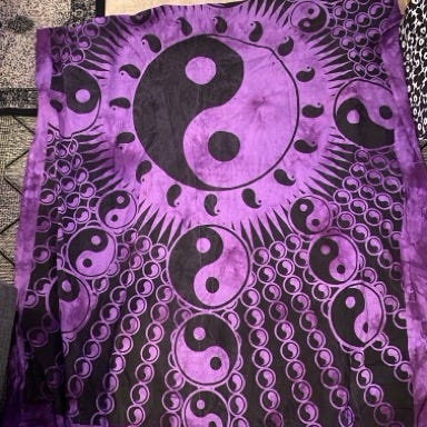Myydään turkoosi seinäkangas budha logoilla