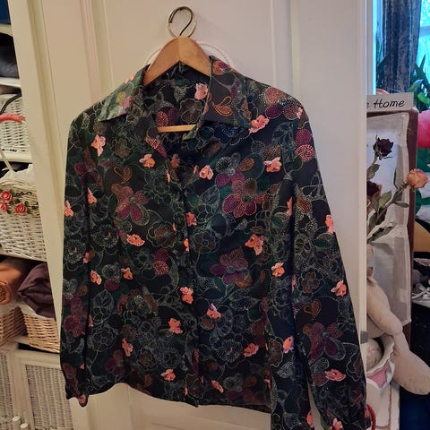 Kukka T-paita. Tummansininen. Koko M. Edessä hopeamerkeillä kukkakuvio.