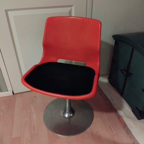 Moitteettomassa kunnossa oleva säädettävä työtuoli. Istuinosa puuta.