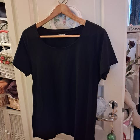 My Wear T-paita. Koko XXL. Tummansininen/valkoinen. Keltainen pääntienauha.