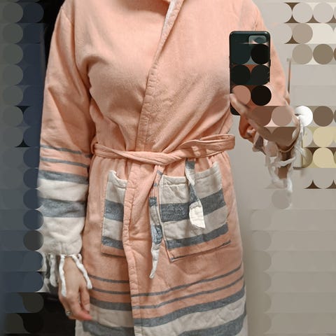Kylpytakki, käyttämätön koko L. 100% puuvillafroteeta . Tumm.punainen.
