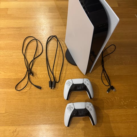 Myydään Sony PlayStation 5 Digital (Slim) 1TB vähäisen käytön takia. Ostettu 12/2024. Hyvä kuntoinen. 2 kpl Sony DualSense langaton ohjain.