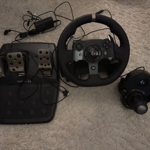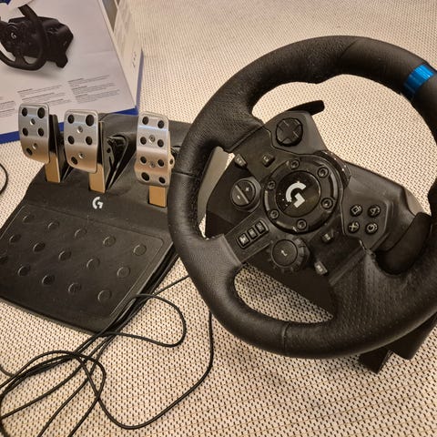 Logitech G923 Ohjauspyörä, polkimet ja vaihdekeppi. Vähän käytetyt ja toimii kuten pitää.