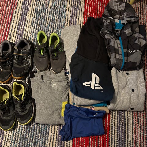 Kuvanmukaiset vaatteet, kokoa 134cm-140cm. Hyväkuntoisia.
