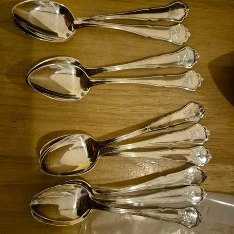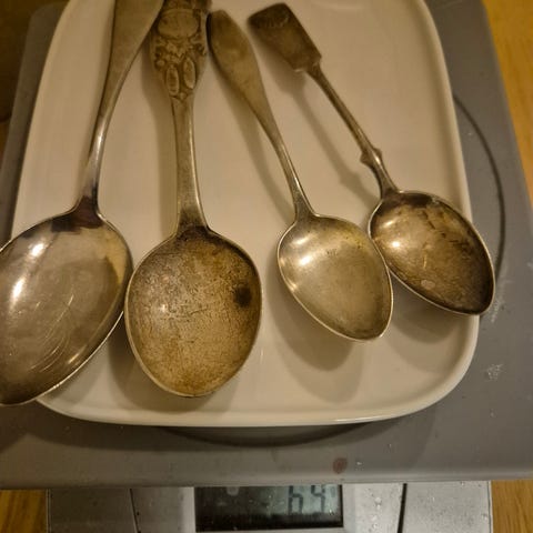 Näissä hieman kulumaa ja tummumaa, mutta osaava saa näistä hienot lusikat, näissä ei ole kaiverruksia.