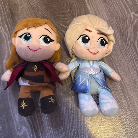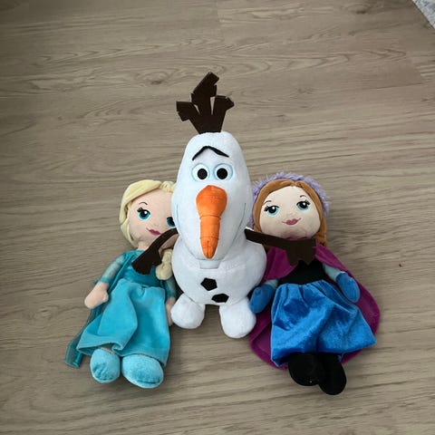 Disney Frozen pehmolelut sisältäen Anna ja Elsa -hahmot. Mukana myös muita lasten leluja kuten pieniä pehmoleluja, leikkiasusteita ja kirjoja. Lelut soveltuvat lasten leikkeihin ja keräilyyn.