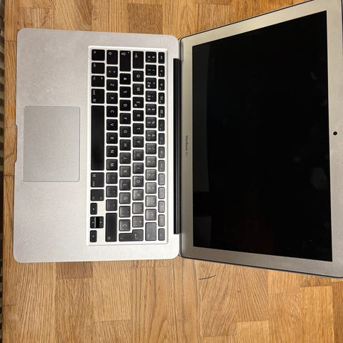 Apple MacBook Air 2017 13” (model A1466). Intel Core i5, 8 GT RAM, 128 SSD. Akkuvikainen, muuten hyvässä kunnossa. Toimii vain laturi kiinnitettynä, muuten hyvässä kunnossa. Alkuperäinen laturi mukaan. Lisäksi musta suojapussi kaupan päälle (kuvassa)