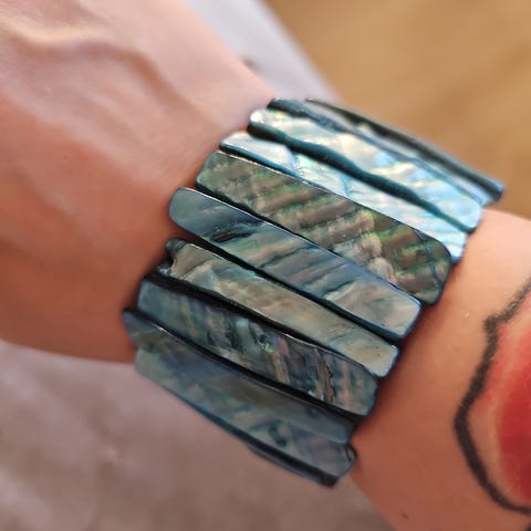 Myydään kuvan rannerengas, joko krokotiilin tai jonkin liskon nahkaa. Pientä kulumaa löytyy, mutta on edelleen hieno ja käyttö kelpoinen. Sisä Halkaisia 6.3cm ja leveys 3cm. Nouto/postitus🙏