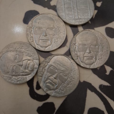5€ juhlarahat, 650€ arvosta. Saa kysyä ja tarjota hintaa jostain kolikosta. Voin tarkemmin katsoa löytyykö jokin tietty juhlaraha :) Nouto Turusta 26.1. tai 7.-8.2. tai Espoosta muuten. Postitus onnistuu myös.