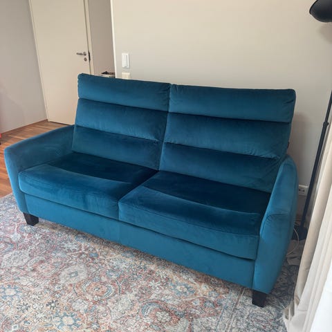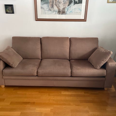 Finsoffat 3 istuttava sohva. Väri terrakotta. Istuin/selkäosien päälliset irrotettavat ja pestävät. Koiratalous.