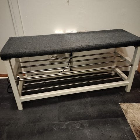 Monikäyttöinen upea sohvapöytä tai kenkähylly. Toimittanut molempia virkoja erinomaisesti. Näyttävä ja lämminhenkinen katseenvangitsija.