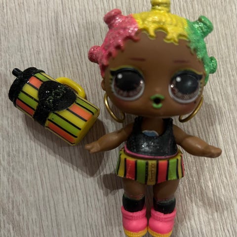 L.O.L. Surprise glitter nukke Jammin' Neon, nukella on värikkäät hiukset ja mukana kuvan varusteet. Nukella hieno värikäs asu ja kengät. Sopii lasten leikkeihin ja keräilyyn. Tämä kuuluu 12 erilaisen nuken keräilysarjaan. Huom. Myynnissä on kaksi samanlaista glitter nukkea. Hp. 9.00 euroa/tarjous.