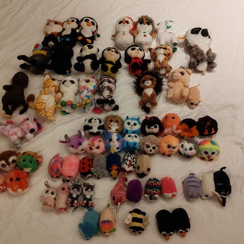 Ty Me to You nalleja, kaksi harmaata nallea, joista toinen on suurempi ja toinen pienempi sininen neulepaita päällä.