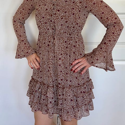 Myydään Tokmannilta ostettu Pola merkkinen frillamekko koko L. Kerran käytetty.