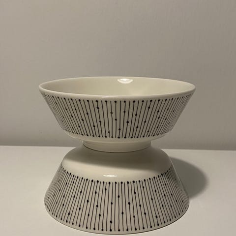 Iittala Arabia Mainio kulho, jossa valkoinen pohjaväri ja musta viivakuviointi. Astia on valmistettu kestävästä materiaalista ja soveltuu monipuoliseen keittiökäyttöön.