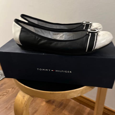 Tommy Hilfiger ballerinat, koko 38. Kengät ovat vaaleanruskeat ja valmistettu mokkanahasta. Naisten malli.