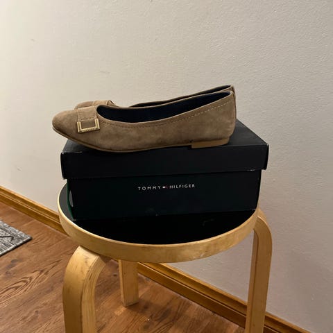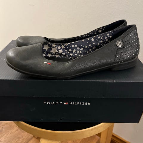 Tommy Hilfiger ballerinat, koko 38. Mustavalkoiset, valmistettu nahkamateriaalista. Naisten malli.