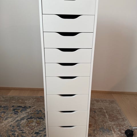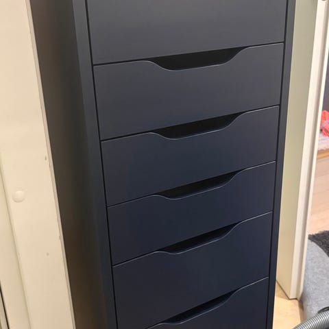Yksi jalka puuttuu joten laatikosto epätasapainossa. Tämä helposti korjattavissa.