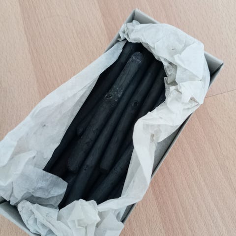 Kulmamittausväline maalauspohjan suorakulman mittaamiseen ja hiomapaperia taidetyöskentelyyn.