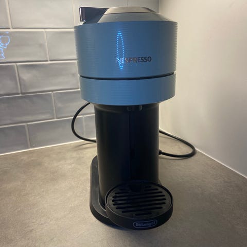 Nespresso Vertuo Next kahvikone, valmistaja DeLonghi. Kahvikone käyttää kapselikehikkoa ja tarjoaa erilaisia kahvijuomavaihtoehtoja. Laitteen väri on harmaa. Soveltuu kotitalouskäyttöön.