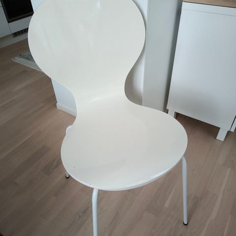Annetaan muuton tieltä keinonahka päällysteinen tuoli. Yksi jalka on hieman irti.Muuten kunnossa.