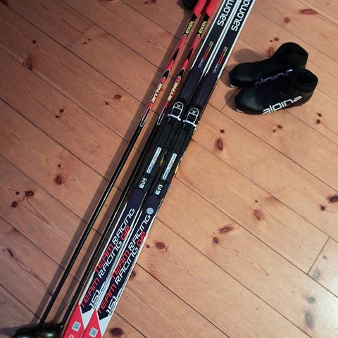 Myynnissä pakettina siistit lasten Salomon pitopohjasukset 100, sauvat ja monot, koko 29. Erittäin helppokäyttöinen SNS-side.