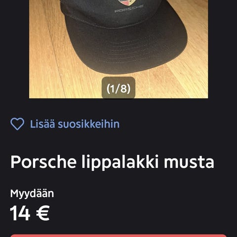 Porsche lippalakki musta, koko säädettävä