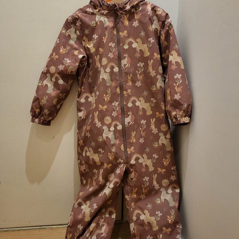 Elloksen fleecevuorellinen kurahaalari. Käytetty kunto. Kulumaa saumoissa, pieniä naarmuja polvien kohdilla. Rymyhaalariksi vielä jollekin.