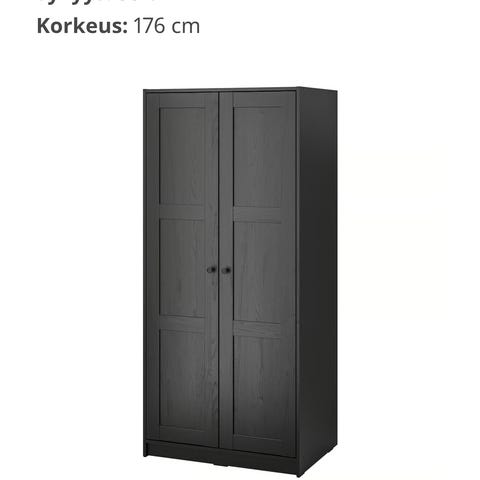 Yhdessä hyllyt, kaksi ovea jonka takana tanko. Käytön jälkiä vähän löytyy, mutta hyvin siistit.