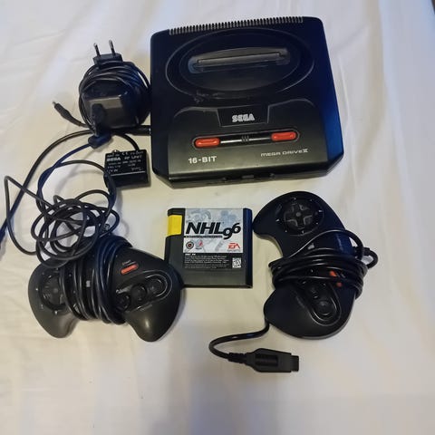 Myydään Sega Mega Drive II pelikonsoli 16-bittinen.mukana alkuperäinen pakkaus,alkuperänen ohjekirja. Alkuperänen varoitus lappu. 2 x ohjaimet ja pelit Sonic 2 ja NHL 96 joihin löytyy alkuperäset ohjeet. Kaikki virtajohot mukaan myös