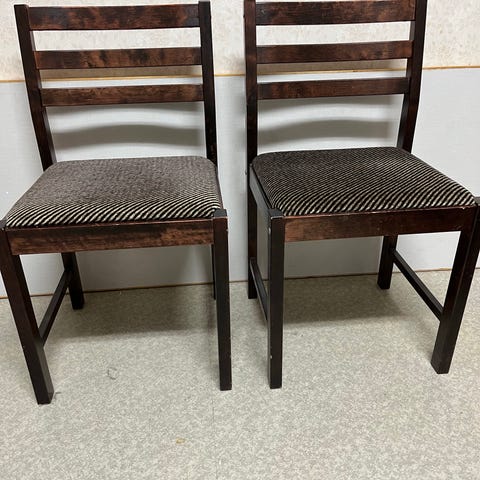 Jos laatua kaipaat, niin tässä vanhemmat, erinomaisessa kunnossa olevat ruokapöydän tuolit, kertaustyyliä (rokokoo ym.) ja puuosat mahonkia.