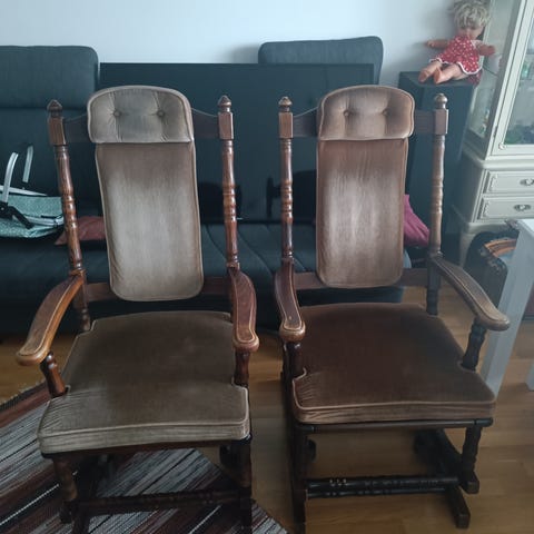 Keinutuoli ”jousilla”. Keinukaluste Ky Seppo Saari, Urjala on tekijä. Sopii pieneenkiin tilaan. Hyvä istua ja tukeva.
