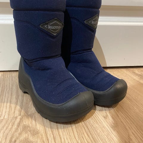 Myynnissä siistit Kuomat, koko 25. Helpot pukea, lämpimät ja kevyet jalassa.