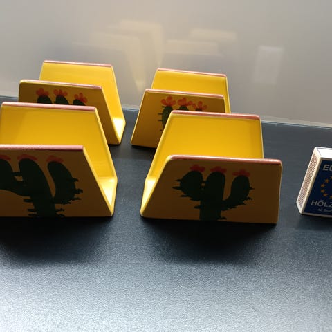 Jenkeistä tuodut, käyttämättömäksi jääneet, tacotelineet, 2 kpl. Pituus n. 18 cm.